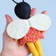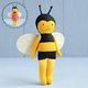 图案包括逐步照片说明和用于制作迷你蜜蜂娃娃的全尺寸图案片。蜜蜂穿着一件底部边缘呈扇形的裙子,这使得它类似于风信子或郁金香。你会发现这件衣服尽管尺寸很小,但使用我的技术很容易制作。这件洋装有全衬里,背面有按扣,经过精心设计,不会干扰翅膀。蜜蜂可以轻松放入口袋中,非常适合散步或旅行时携带。这款毛绒动物也是完美的情人节礼物。没有支撑,娃娃就无法站立。