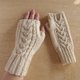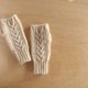 我用小羊草泥马和羊毛纱线的混合物编织了带有阿兰图案的暖手器。