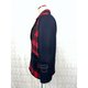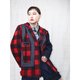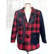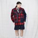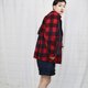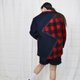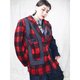 用了有一点点扎眼的红黑相间的格子和深蓝色的布料相结合。