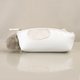 It is a cat-type pen case that expresses the pattern of a cat with a white leather fabric and a generated canvas fabric.
