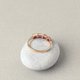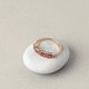 这款18K玫瑰金红宝戒,设计灵感宛如一首细语低吟的诗。四颗红宝石镶嵌于玫瑰金细致勾勒出的方框中,让红宝石的艳丽在金属光泽间显得更加色泽饱满与光感清晰。