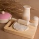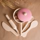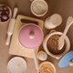 这套木制厨房玩具配件包括 15 件物品: 带盖平底锅 - 1 件(直径 3.9 英寸/100 毫米,高度 2.7 英寸/60 毫米);附盖煎锅 - 1 个(直径 3.9 寸/100 毫米);切菜板 - 1 块(长 6.7 寸/170 毫米,宽 4.7 寸/120 毫米);瓶子 - 1 件(高度 3.9 寸/100 毫米);盐瓶 - 1 个(高度 2 英寸/50 毫米);擀面棍 - 1 件(长度 5.9 英寸/150 毫米);刀 - 1 件(长度 5.5 英寸/140 毫米);汤匙 - 1 个(长度 5.5 英寸/140 毫米);刀片 - 1 件(长度 5.5 英寸/140 毫米);汤匙 - 2 件(长度 3 英寸/75 毫米);板 - 2 块(直径 3.2 英寸/80 毫米),深汤盘 - 2 个。 (高度 1.6 英寸/40 毫米,直径 2.8 英寸/70 毫米)。