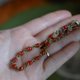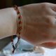 将红珊瑚珠逐一打结,制成了这款线材手链。