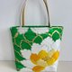 这款典雅的托特包,由古董和服腰带重新制作而成,将传统工艺升华为现代风格。设计上描绘着日本文化中象征“富贵”、“名誉”与“幸福”的美丽牡丹。