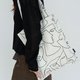 【脸】森系复古文青/高级感抽象人脸刺绣单肩布包 - 侧背包/斜挎包 - 其他材质 白色