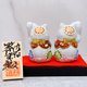 以红色为主调,搭配黄色与白色细节,猫咪展现灿烂笑容,双手合十象征「笑门来福」与招财