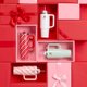 杯身红白交错的线条在雪中欢乐共舞,迷人闪烁的金色圆点就像冬夜里的星光,为整体增添光芒。以红、粉、白、薄荷绿交织出如糖霜般的梦幻色调,每一款都像一份礼专属于你的节日礼物,温柔又闪耀。