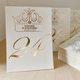 婚礼熨金枱号咭,吊灯设计,在里面熨妳们的名字和婚礼日期。选用典雅蓝厚咭,两面熨金,座枱设计轻易摆放。