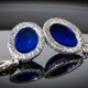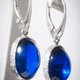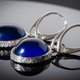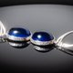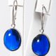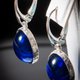 这些精致的手工耳环采用天然蓝琥珀,镶嵌于925纯银底座。