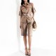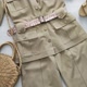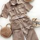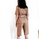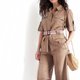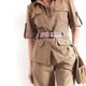 米色女式狩猎套装优雅、优雅,同时又舒适。 手工制作的西装布料自然轻盈,夏季穿着舒适。 套装包括带口袋和腰带的衬衫以及带侧袋和松紧腰部的短裤。
