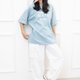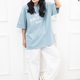 Colette Club 浅蓝落肩短袖上衣 透气舒适,春夏皆宜