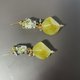 ■黄菀花植物风珠饰与仿大理石纹珠饰耳饰 (芥末黄)