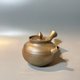 这款侧把壶有丰富的窑内火痕,很难想像在窑内中是经历了多少柴火烟熏的洗礼。壶身深沈的古铜色泽散发出低调而神秘的魅力,就像古诗所说:“色如古月无尘埃”,沉稳而不失风雅。