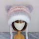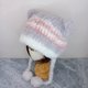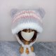 触感非舒服柔软的仿水貂毛皮草线纯手工鈎织,可爱熊耳兜帽。