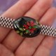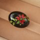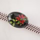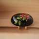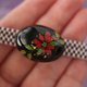 天然石黑玛瑙与圣诞红、金箔的饰物扣