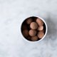 选用高品质的榛子,用焦糖包裹外层使其香甜松脆。 然后在焦糖榛子上,反复地上涂上75% 黑朱古力,形成厚厚的朱古力层。 最后在黑朱古力焦糖榛子外层,撒上秘鲁单一产地天然有机可可粉。