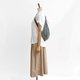 ◎包包表布使用蓝灰色帆布,以及茶色与绿色的聚酯纤维。