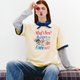 🧤 采用厚实棉质,着感舒适的浅黄色 T-shirt,饰有海军蓝滚边。