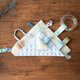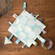 【安抚巾】20cm×20cm,表布/日本二重纱、韩国豆豆布,内有响纸,并附圆形透明摇铃(内有彩球)、奶嘴夹。