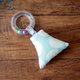 【手摇铃】11cm×11cm,表布/日本二重纱、韩国豆豆布,内有响铃,并附圆形透明摇铃(内有彩球)。