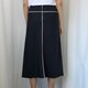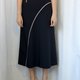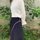 丝质料制成的A字裙,不失端庄优雅感,以卡其、黑织带作为剪接装饰