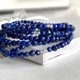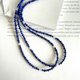 A long necklace that doubles as a bracelet, with 2 kinds of 3mm and 4mm lapis lazuli from Afghanistan alternately interlaced, and 2 labradorite beads placed equally.