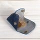 冈山牛仔布 金字塔造型 零钱包 钥匙圈 吊绳 靛蓝色
