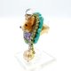 柯基哥基狗头缀水晶宝石装饰皇冠吊水晶珠 鲜薄荷绿花边黄铜戒指