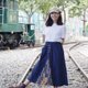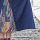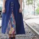 俄罗斯方块 民族布拼接棉麻半裙|深蓝色