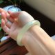 **〔 简介 〕:**收藏级 高冰晴水美玉镯 精致和田玉 料子冰润细腻 超有存在感 又润又细腻 品质非常不错哦 圈口54.7 尺寸9.8*7.2 编号00215 进店点关注送优惠券!