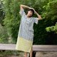 V领短袖洋装。采用异材质拼接设计,搭配不同印花,并设有开衩下摆与双侧口袋。 模特儿身高 163 厘米。 100% 棉