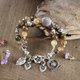 • **材料**:泰国银、小树胶花水晶(9.5 毫米)、沙弗莱石绿石榴石(10.3 毫米)、棕色四季彩幽灵水晶 (7mm) 、 925纯银(圆珠3.5 和 4 mm)。