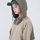 - 突破的版型设计,前斜双开口拉链剪裁,卡其色拼接具户外风格,给您泉新风貌,连帽设计增加造型感, 款式细节复杂度高,帽侧即下摆皆有抽绳可做调节,下摆及袖口皆有雾黑金属钉扣,袖口钉扣可调整袖口围,下摆可往上扣收平下摆,中性款式男女皆可穿着。