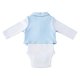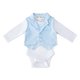 小绅士型 初生婴儿长袖连衣裤,粉蓝色系 前襟小领结,马甲袋巾装饰,3粒钮扣可随意打开 包屁衣配长裤,多式撘穿