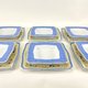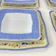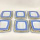 一套优雅的方形德国瓷深餐盘和合适的充电器盘,手绘蓝釉和花卉图案。 来自著名公司 Van Well。