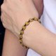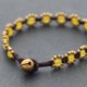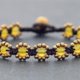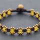 这是手工编织的手镯,用深棕色蜡线和染色的玉石和黄铜珠编织而成。关闭使用铜钟