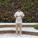 - 材质为凉感材质,钮扣采用中国结一字扣去表现,呈现复古风之外更考量到便利性及舒适性,钮扣前襟采用暗门襟的设计,隐密性更高。 口袋有别传统,采圆弧式特殊剪裁设计,整体呈现更时尚。