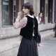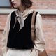 PS:丝绒面料的原因,无法用机器针脚固定收口,因此马甲内里下摆有一处手缝三角拱针的处理,手缝不如机器处理的美观,这里不算瑕疵部位呦~
