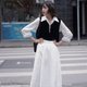 叠穿优雅的黑色提花连衣裙