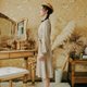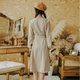 - 基础的V型翻领,好穿百搭,领口向下延伸到腰部,单排仿木扣子,扣袢都是选用有弹力扣袢,非常好穿脱,腰部双面双色拼接腰带,