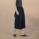 - 黑色/藏青色 帶條褲子去火星 重磅水洗亞麻闊腿八分褲闊腿褲寬褲