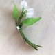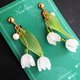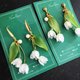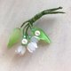 This is a 3D shrink plastic earrings and brooch set with a motif of the lily of the valley, with its cute little white flowers.