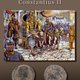 凭借军事技巧和忠于职守,君士坦提乌斯二世(君士坦丁大帝之子)成为罗马帝国的唯一统治者。 与波斯人的小规模冲突、野蛮人的边境袭击以及军团的起义困扰着他的统治。 这枚青铜硬币的背面描绘了一名罗马士兵正在前进,用长矛刺杀骑在马背上的倒下的敌人。 这个主题被称为堕落的骑士。