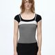 黑灰撞色 mu1系運動風花邊拼接天絲短袖針織上衣