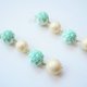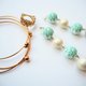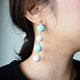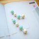 淡绿色的手鞠球及珍珠交互串成的长链式耳环。最上面的手鞠球到最下面的珍珠,渐渐一点点地变大。并以整体配色,来营造成熟的氛围。