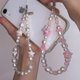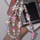 粉红星星手机带:玫瑰石英和压克力珍珠