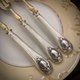 蛋糕叉面是非常特别的法式切叉面,法国餐具的造型变化一向是世界之最,有些实用,有些则艺术成分大于实用程度,而这款黄铜切蛋糕叉面的叉子,是我觉得兼具美观及实用度最佳的法式餐具,因此,我热衷去寻找这种类型的蛋糕叉,很可惜的这种蛋糕叉,并不是那么好找,比较常见到的是胶木柄材质的,母贝材质的也不好找,通常找到都只有个位数几把,纯银柄材质的更是难得,非常值得珍藏使用。