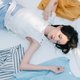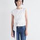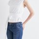 不对称袖的设计,绑带可随自己喜好,绑侧边或腰后。