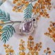 这颗紫水晶透明度很好,没有杂质,色彩是漂亮的浅紫色。做装饰的时候,我选择在颜色上尽量简单,所以上方的配珠也是紫水晶,但选了深色的紫让画面有变化,其余的部分和框线统一做银色,凸显轻盈明确的主题。