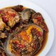 “酱蟹”特地挑选活体红蟳,只只爆膏,且刷洗干净内脏,没有腥味且能呈现出海鲜应有的鲜甜。1份1只均重在6两上下。再佐以独家韩式水梨、小辣酱,腌制48小时而成,超入味却不死咸。